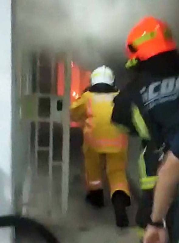 涉事单位内的阿嬷疑因吸入过多浓烟,被送院治疗。
