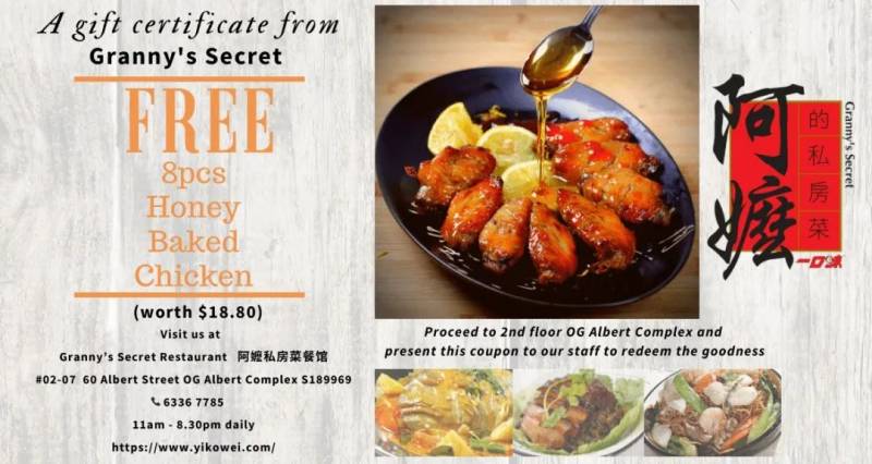 就享有免费阿嬷秘制鸡翅8个(价值$18.8)