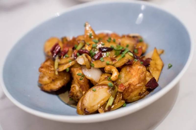 这道宫保虾炒年糕,结合了川味和上海味儿,里面放了坚果和非常大的虾仁,葱花和洋葱,干辣椒,配料一点不马虎。年糕口感非常有质感,这样的搭配有师傅的用心和创意,新菜值得推荐。