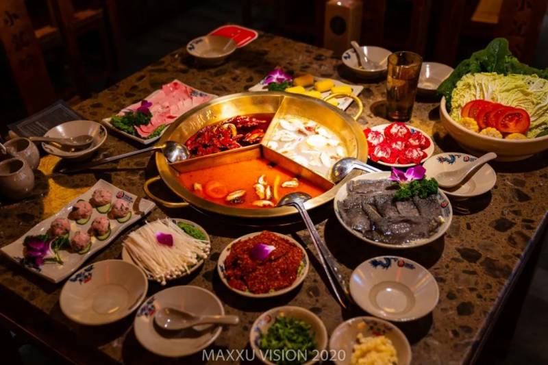 红彤彤一锅,看着就喜气。采用的是顶级辣椒,地道的牛油汤底火锅