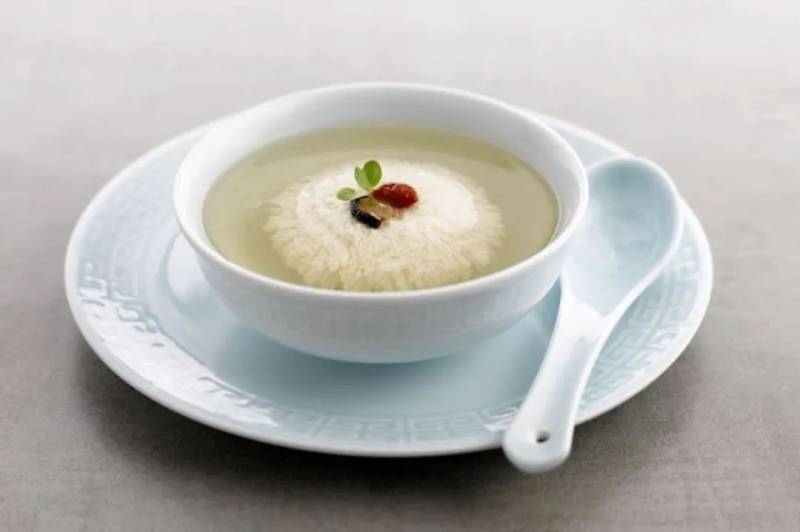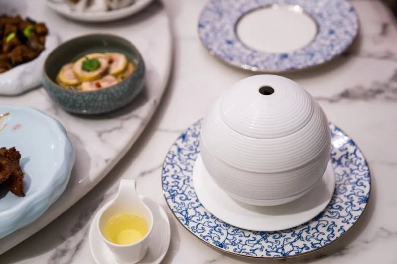 在同乐经典的最新菜单中,这道“菊花玉绣球”不仅在味觉上给食客不一般的体验,更是在视觉上令人耳目一新。所谓“玉绣球”是把豆腐横向和纵向切成极细的豆腐丝,然后放在水中让豆腐绽放出如菊花般的动人形态。中餐特别讲究刀工,没有经过多年训练的大厨是无法在豆腐上展现如此精湛的功夫。豆腐绣球被放入经过长时间熬煮的高汤里,绵软的口感和高汤的鲜甜融为一体,令人一口下去还想再吃上一口。虽然是简单的食材,却令人回味无穷,有道是“人间有味是清欢”!