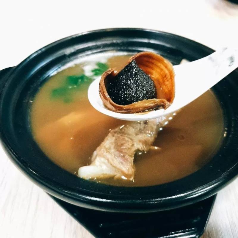 黑蒜特级肉骨茶,那一口惊艳了舌尖,颠覆了我对大蒜的认知。传统的肉骨茶用的是白色的大蒜,这家老板用的是祖传独家秘制的黑金蒜。黑蒜味道甜酸,淡淡油脂香,美味可口,也可以当作点心或甜品来吃!