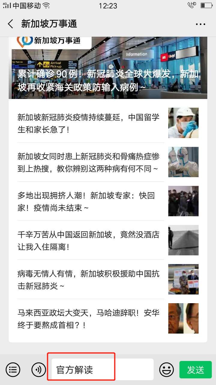 不少通心粉咨询万事通与之相关的系列问题,比如对于居家令:为什么我会收到居家通知,一定要遵守吗?为期14天的隔离假到底从哪天开始算?我被隔离了,我的日常采购怎么办……比如对于入境申请:我持有工作准证,如何提前申请入境新加坡?都需要哪些资料?我是持有新加坡工作签证的中国人,能否通过新加坡入境另一个国家?我是新加坡公民,到过湖北,能入境或者过境吗?我是外籍人士,如何申请申请延长逗留期……为此,万事通特别做了一版相关政策的最全面、最权威、超详细的解读,只需简单两步,立即获取全文:1、长按扫描以下二维码