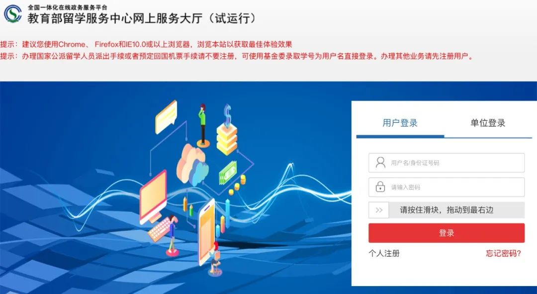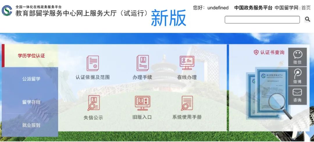 现在申请学历学位认证,都需要登录留学服务政务平台(新版)办理。