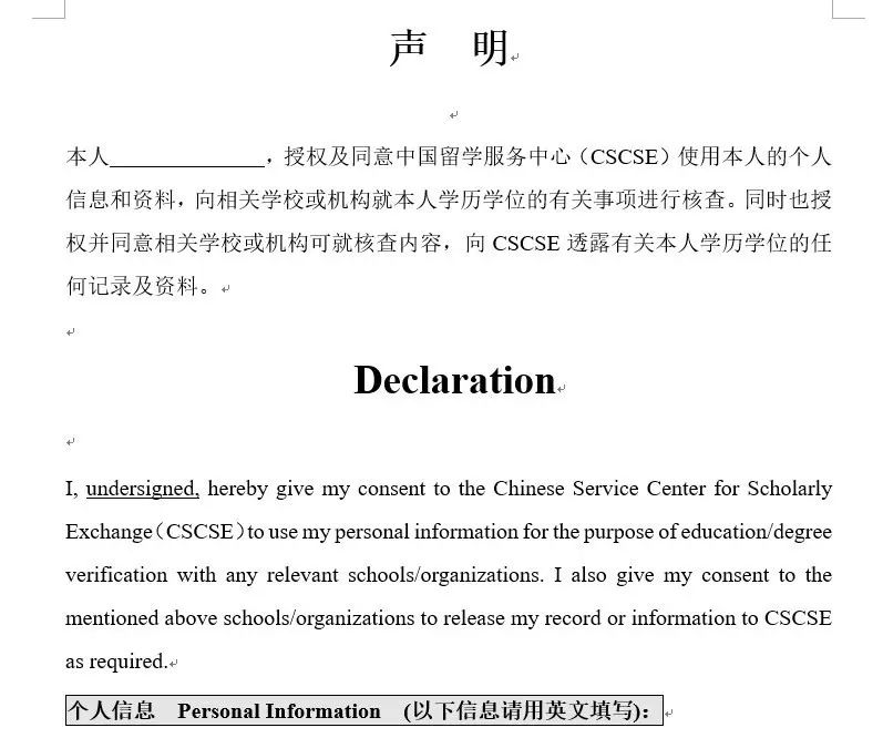 中心核查文凭证书真伪需获得证书持有人的书面授权。通用版《授权声明》适用于多数国别和院校,可在申请系统中下载。