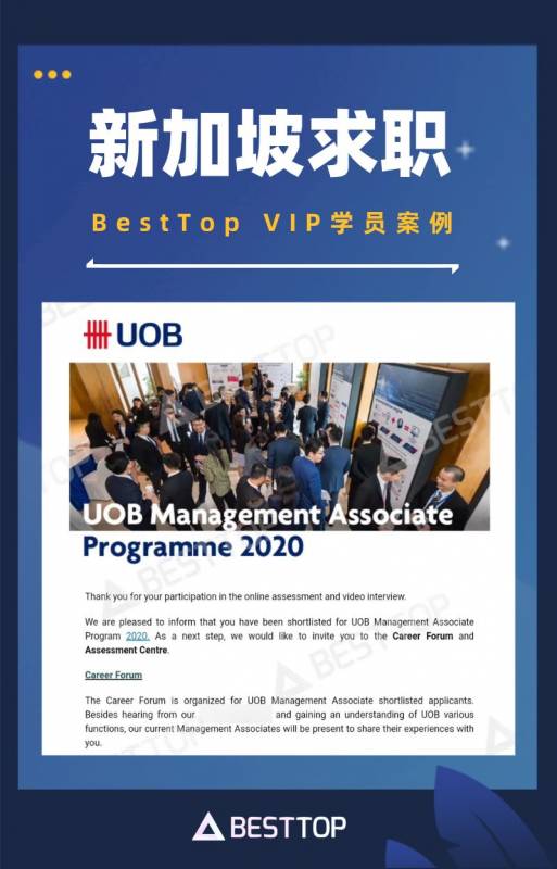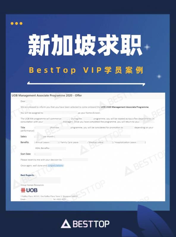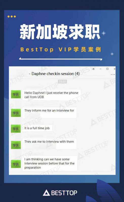 BestTop已有多位学员收到新加坡三大行的offer和面试邀请。