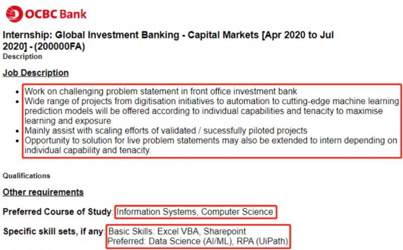 OCBC目前仅有实习项目开放了申请通道,但职位类型比较多,penultimate year的同学们,快来看看有没有你向往的职业方向吧!