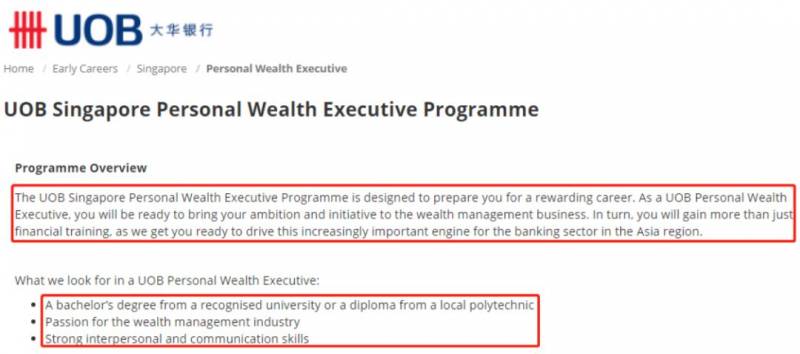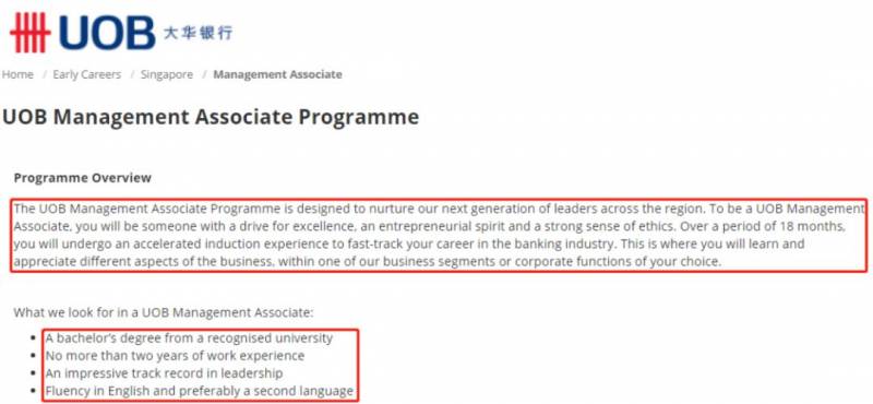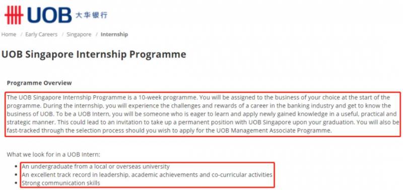 UOB同样开放了Graduate Program和Internship Program. 其中Graduate Program开放了两个重要部门的岗位,同样也没有专业限制,大家可以大胆申请。