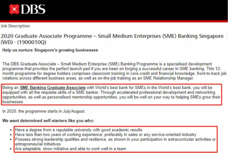 目前开放的Graduate Program是Small Medium Enterprises (SME) Banking, 不限专业,但对GPA有要求哦!