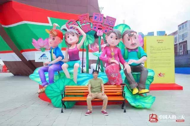 老杨让我帮他拍张照,后面的背景是阖家团圆。