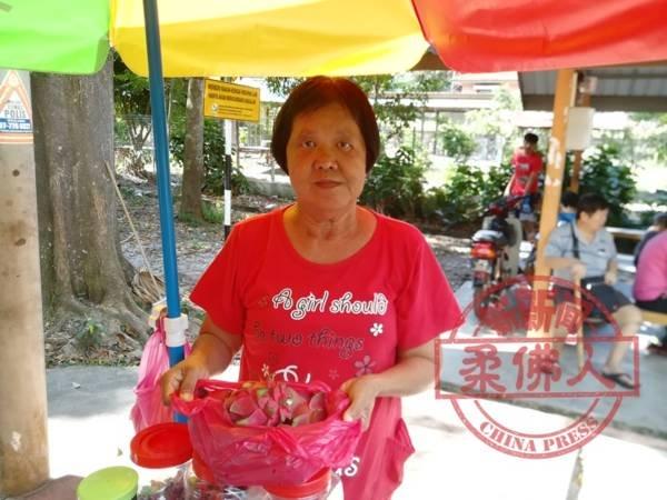 张女士说,昨天带来南峇山售卖的番石榴和龙珠果都很抢手,尤其番石榴很快就售完。