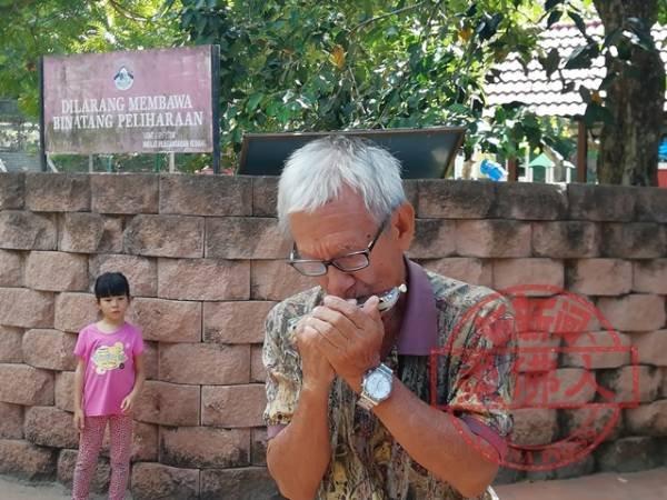 老伯在南峇山表演口琴,获得游客给予掌声鼓舞。