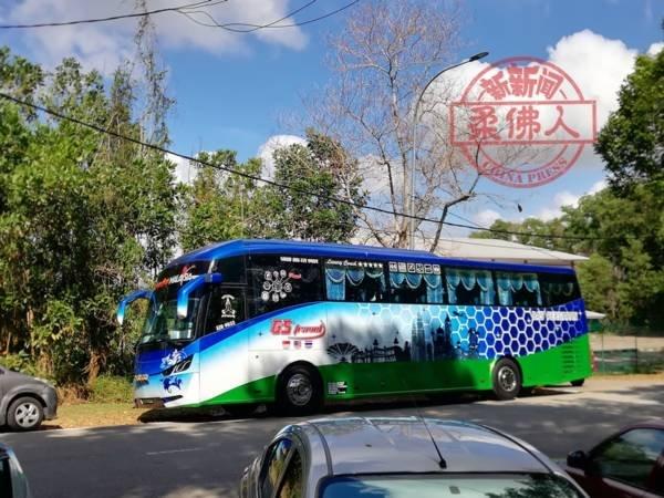 新加坡旅行巴士照常进入居銮南峇山,展开一日游行程。