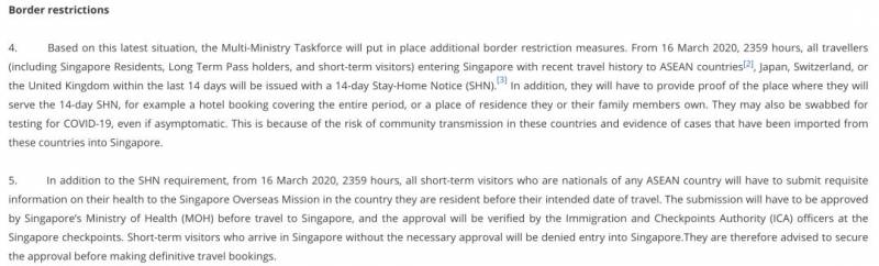 长期准证:14天内到过以上国家和地区的新加坡公民,永久居民和长期准证持有者入境会受到居家通知,隔离14天后才能出门。