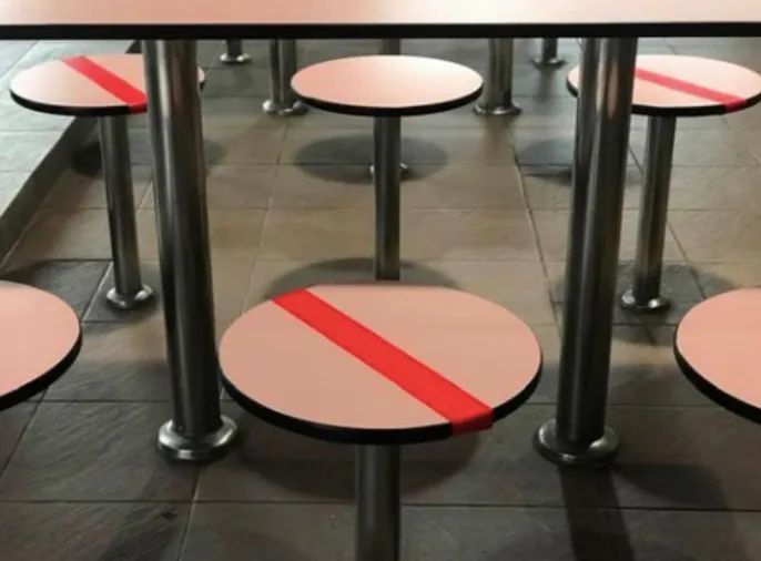 3月13日,因为新冠疫情扩散,新加坡卫生部建议人们保持至少一米的距离。许多的小贩中心、图书馆、音乐厅等都各出奇招,尽量让大家不要有太多接触。 这两天,就有网友po出了小贩中心里的特殊座椅,一条红色胶带贴在椅子中央,成了“禁坐”标志: