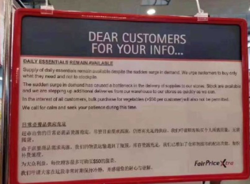 在此,万事通也提醒大家,新加坡太热,有些食品买太多不易储存,之前还发生过有人食物买的太多以后感到后悔,跑去问政府可不可以退,结果政府让他直接捐献掉的趣闻,大家不必出于恐慌而急于囤货,毕竟赚钱不易,自己的银子花著还是心疼的~