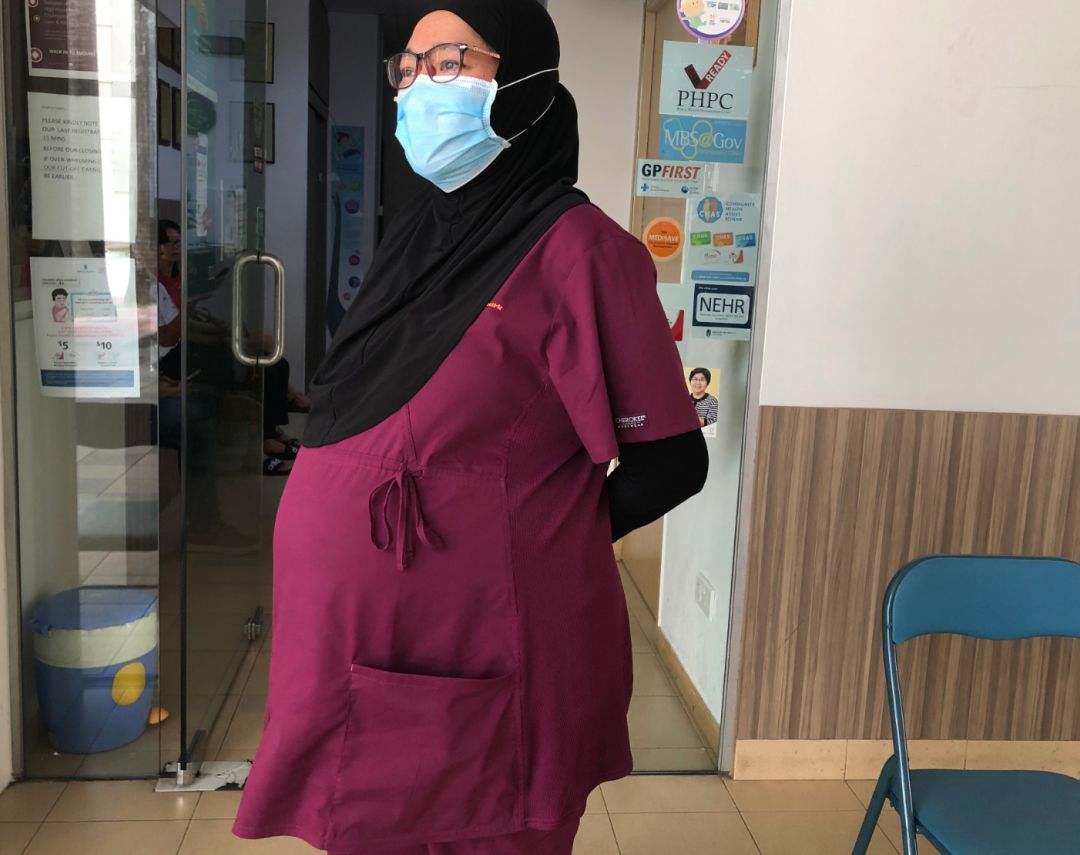 蔡博士将自己每次探访父母的时间限制在30分钟以内,而且大家也不再围坐在一起吃晚餐。而在她咨询室外面的则是一个挺著大肚子的护士,38岁的努拉辛塔·曼索尔已经怀孕7个月,但她仍坚守岗位,在诊所里负责筛查,识别和分离高危的病人,以便医生可以做好防护措施为他们进行检查。