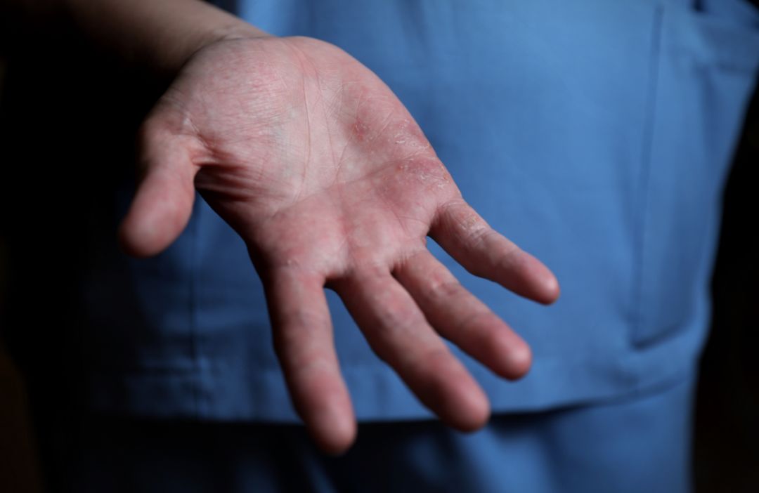 在用餐期间,他们还必须坐在彼此相距约两米的地方,最近不断使用含酒精的手揉搓剂,会导致干疹和干裂时湿疹突然发作。
