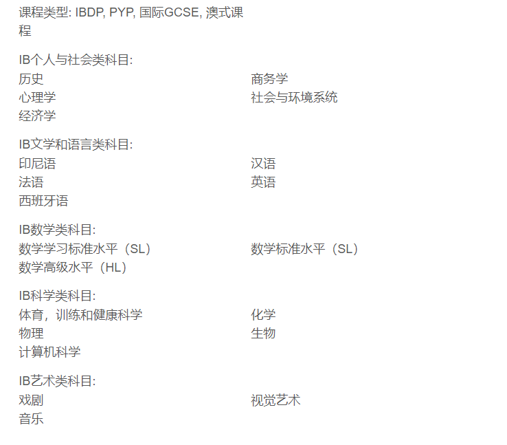 该校采用新南威尔士教育部课程和国际文凭课程,是世界范围认可的著名教育机构。