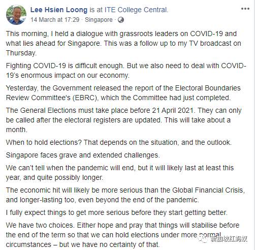 全球疫情此起彼伏,新加坡人几乎忘了大选这回事,直到上个星期五突然来了个选区重新划分的宣布,熟读人民行动党半个世纪来选举套路的人立即指出,大选快来了!这些政论家说,在选区划分报告出炉后的三个月内举行大选,是执政党一贯做法。于是,大选成了另一舆论焦点,反对党的反应尤其强烈。疫情之前,各路民间政论家都说,大选应该在今年四五月举行。疫情蔓延开来之后,人们对新冠病毒的关注掩盖了一切,人们或忘了此时大选的可能,或觉得此时不可能大选。我们不是天天在说全心全力抵御病毒吗?