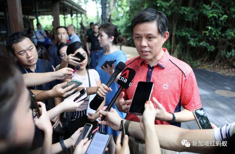 贸工部长陈振声周末在动物园接受媒体访问。(联合早报)