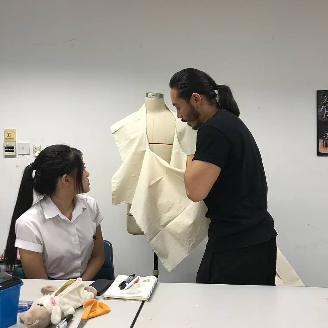 课程内容并不局限于时装设计。不擅长DIY的学生可以注册成为一名模特,参加拍摄,穿着同学们设计的服装昂首阔步地走在T台上。