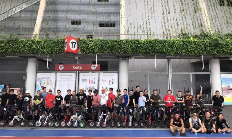 (百名鱼粉骑行大鱼智行车走红新加坡街头)