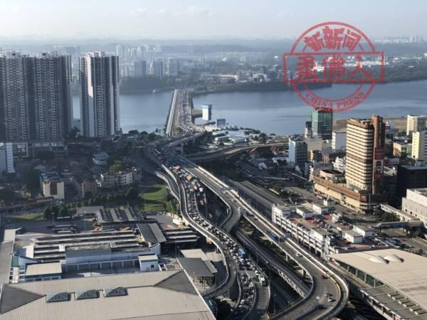 《中国报》今早走访新山苏丹依斯干达大厦(CIQ)附近,发现通往新加坡的长堤路段已经出现车龙,也有一些马劳准备通关去上班。
