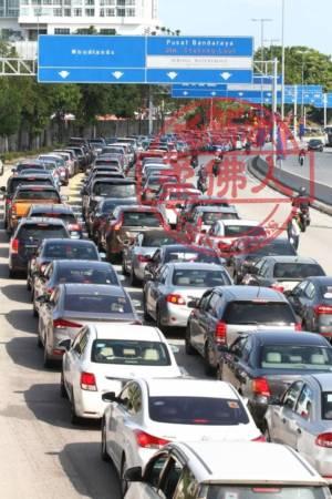 无论是柔佛长堤或马新第二通道,下午5时,往新加坡方向都出现长长车龙。