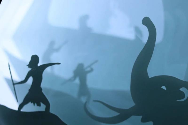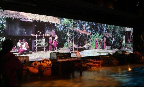 用剪纸的形式展示新加坡历史发展,也是非常有特色的,明暗对比,前后组合。
