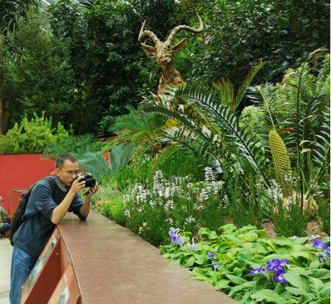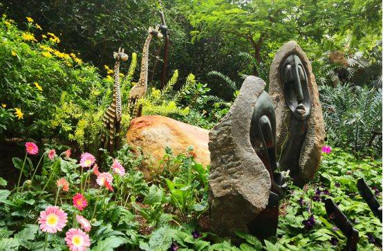 这里的植物种类更多,也多了一些微型植物,比如苔藓类植物,可以用放大镜去观看它的小花小叶,这个园区把垂直绿化、兰花类、食肉植物类、多肉植物、苔藓植物等组合在一起,体现了植物之美,植物之丰富,这是设计师的用心之处,同时也是植物花卉工的辛勤养护之功劳,大胆而又丰富的想像,落地而用心的建设养护,才有这样的作品呈现,当然还有更重要的因素就是持续不断的门票收入作为物质支撑,才让这园区能够可持续发展,这三者缺一不可,而国内很多园博园建设完后就没有多少客流量,导致公园养护成本高,收入少,入不敷出,景区管理也跟不上,而全国每个地方还拚命的建设同质化的园博园,这点值得我们好好借鉴和思考。在秘密花园内另外有一些动物雕刻艺术品散落在植物中,营造一种天然感,不仅如此,还结合了一些灯光、岩洞、钟乳石的设计,打造出自然洞内植物景观。