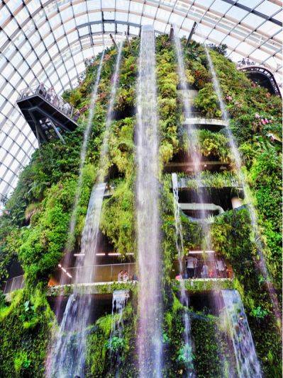 在入戏之前,先谈谈我对新加坡两个印象深刻的景点景观,一个是云雾林,中间绿色建筑凸起,四面环绕垂直绿化和瀑布;一个是樟宜机场的“星耀樟宜”,中间凹进,瀑布从中而泄,这一凸一凹的手法,我用个名字表达叫“凹凸有致”,而且都用到水元素,打造出震撼的效果,也许两者之间没什么关联,但看完景点后,对这两个的印象特别深刻。