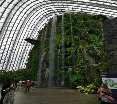 滨海湾南花园区内有两座高大迷人的拱形场馆,这是两个全封闭的植物冷室,说它冷是相对于新加坡的热而言,其实就是我们通常说的温室。两座场馆的占地面积超过2万平方米,是世界上最大的具备控制温度的室内植物园。“花穹”和“云雾林”是建筑、环境和园艺三者完美的结合,曾于2012年荣获世界建筑节年度最佳建筑奖。