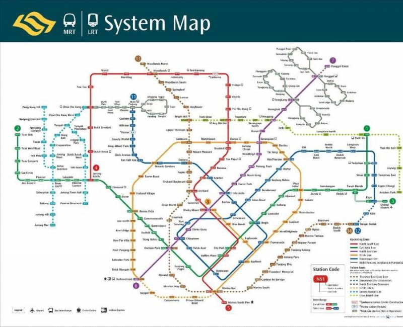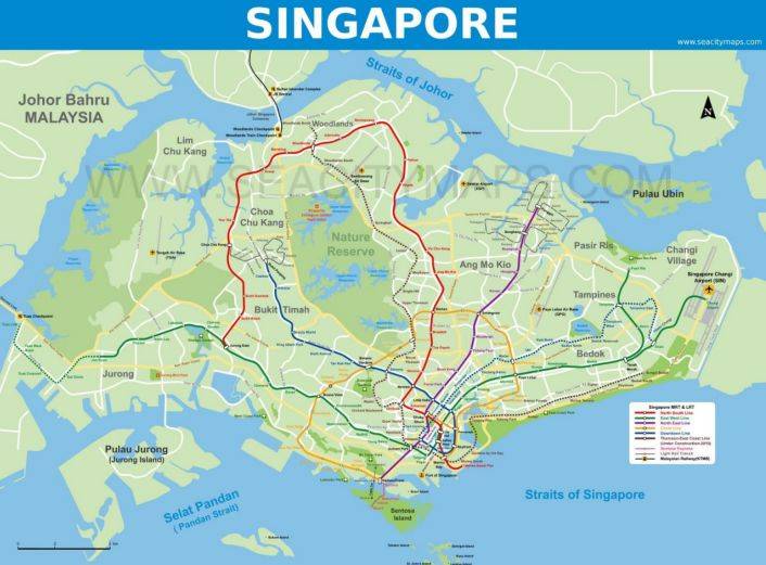 图2:新加坡的地铁、轻轨图(来源:www.seacitymaps.com)
