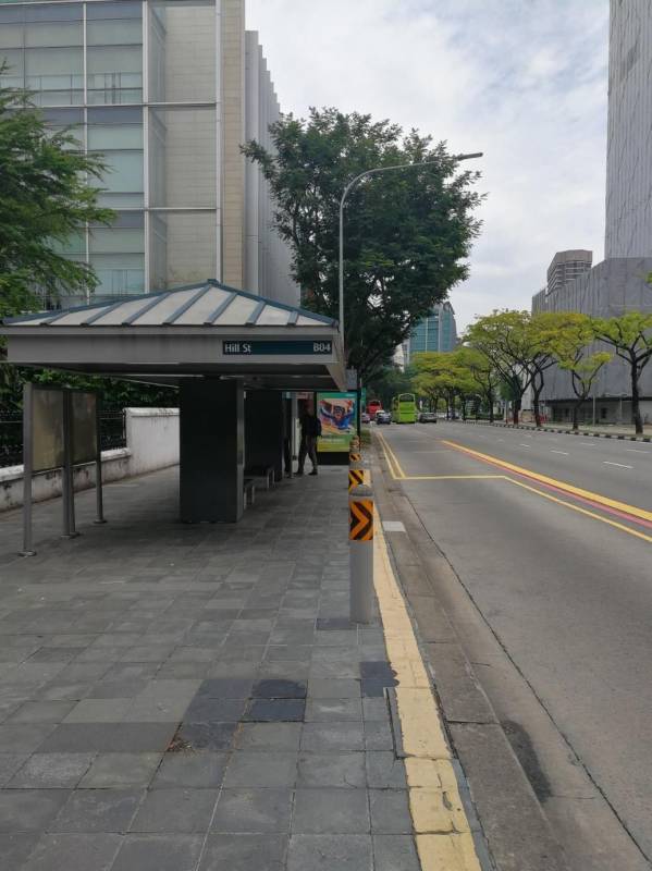 新加坡道路上的公交站主要分两种:无港湾公交站和港湾式公交站。图14是无港湾公交站,设置有公交专用道。而更多的是比较典型的港湾式公交站(见图15),其优势之一是当公交车停靠时对道路交通流的运行基本没有影响。公交站跟周边建筑通过步行走廊的方式连接。这样的设置跟当地气候也有关系,新加坡为多雨地区,如此一来坐公交的人基本不会被雨淋到。