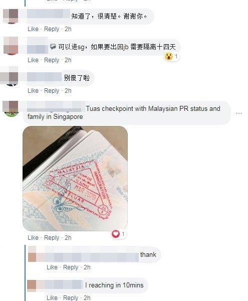 也有网民分享经历,称昨晚尝试进离境被勒令掉头返回,唯向新加坡大使馆求助后,大使馆声称新加坡永久居民可从马新第二通道入境新加坡。