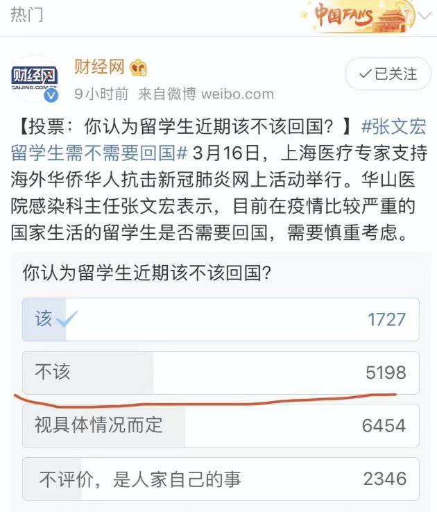 他同时也表示,大疫当前,一些华侨华人回国避疫,的确增加了国内防疫的风险。尽量劝说他们在当地留下,但是如果他们坚持回来,也不能产生不理性的想法和情绪。 此外,还有网友表示,在疫情刚开始的时候,大批在海外的留学生和华人华侨想尽办法购买口罩防护服以及捐钱捐物,为中国的抗疫贡献自己的一份力量,现在因为各种原因要回国,出现冷嘲热讽的声音是极其不应该的。