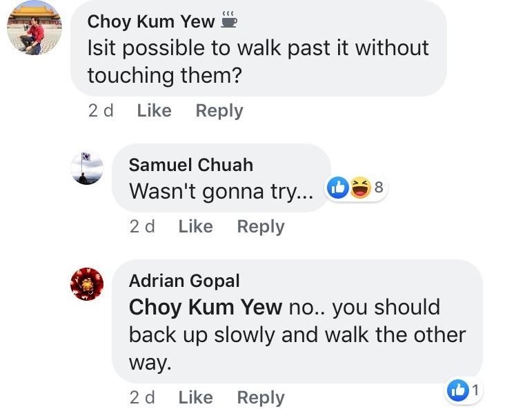 一开始,他看见一碌木横在步道上的时候,第一个念头就是工作人员是混什么吃的,回到去complain他。 (乍看之下真的太像大木头了~)