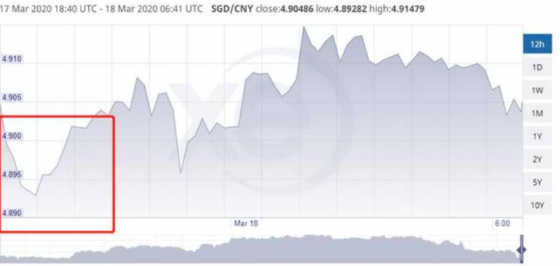 进入3月10日以来,新币对人民币的汇率就跌破了5,不过一直都维持在4.95左右。