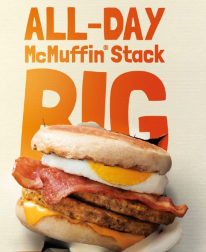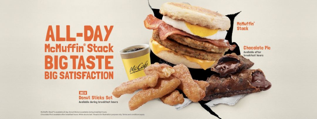 下面插播一段不算是新品,又有新变化的产品,就是麦满分(McMuffin)啦!通常都是只有早餐时段供应的,但最近改成全天供应啦!双层肉饼+培根+鸡蛋+芝士,哇,满满的一口,开启充满活力的一天!