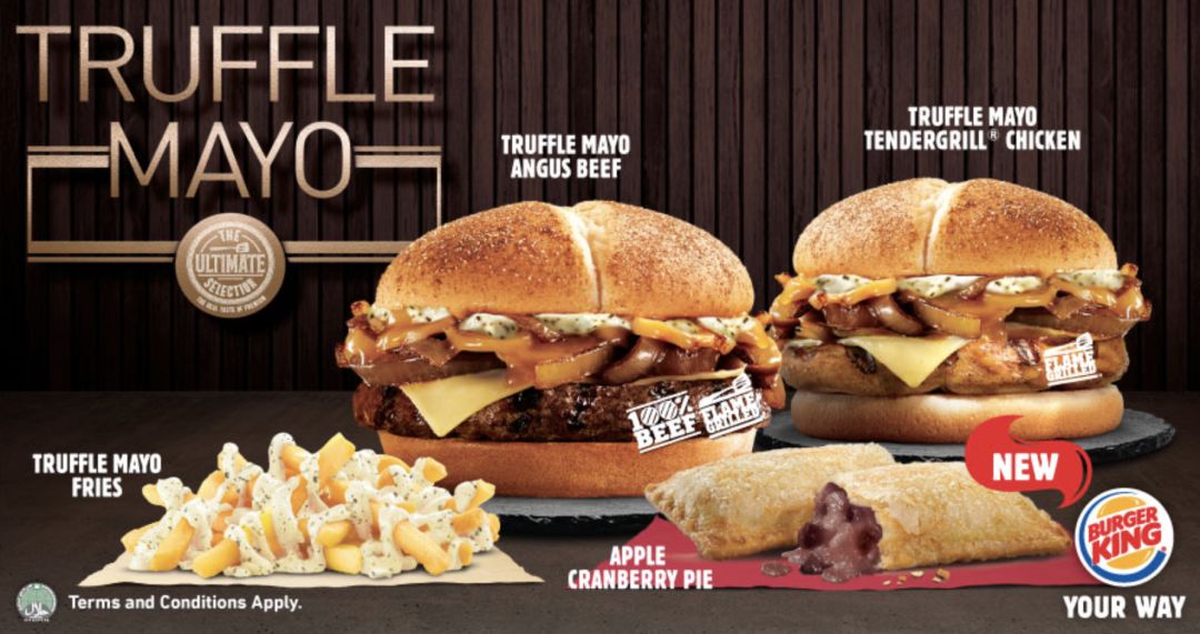 说起出新品,汉堡王只能说正在努力前进的路上。最近,汉堡王主打的是高贵的松露系列,有牛肉、鸡肉汉堡,还有黑松露蛋黄酱薯条,虽然看着热量报表,但味道应该很难踩雷!