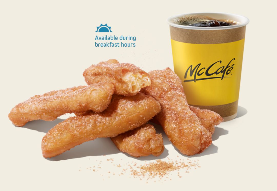 如果你是早餐想试试新口味,也可以叫甜甜棒吃(英文:Dount Sticks),作为早餐,几根甜蜜的Sticks,配上一杯咖啡解腻,可以说是完美的开始了~