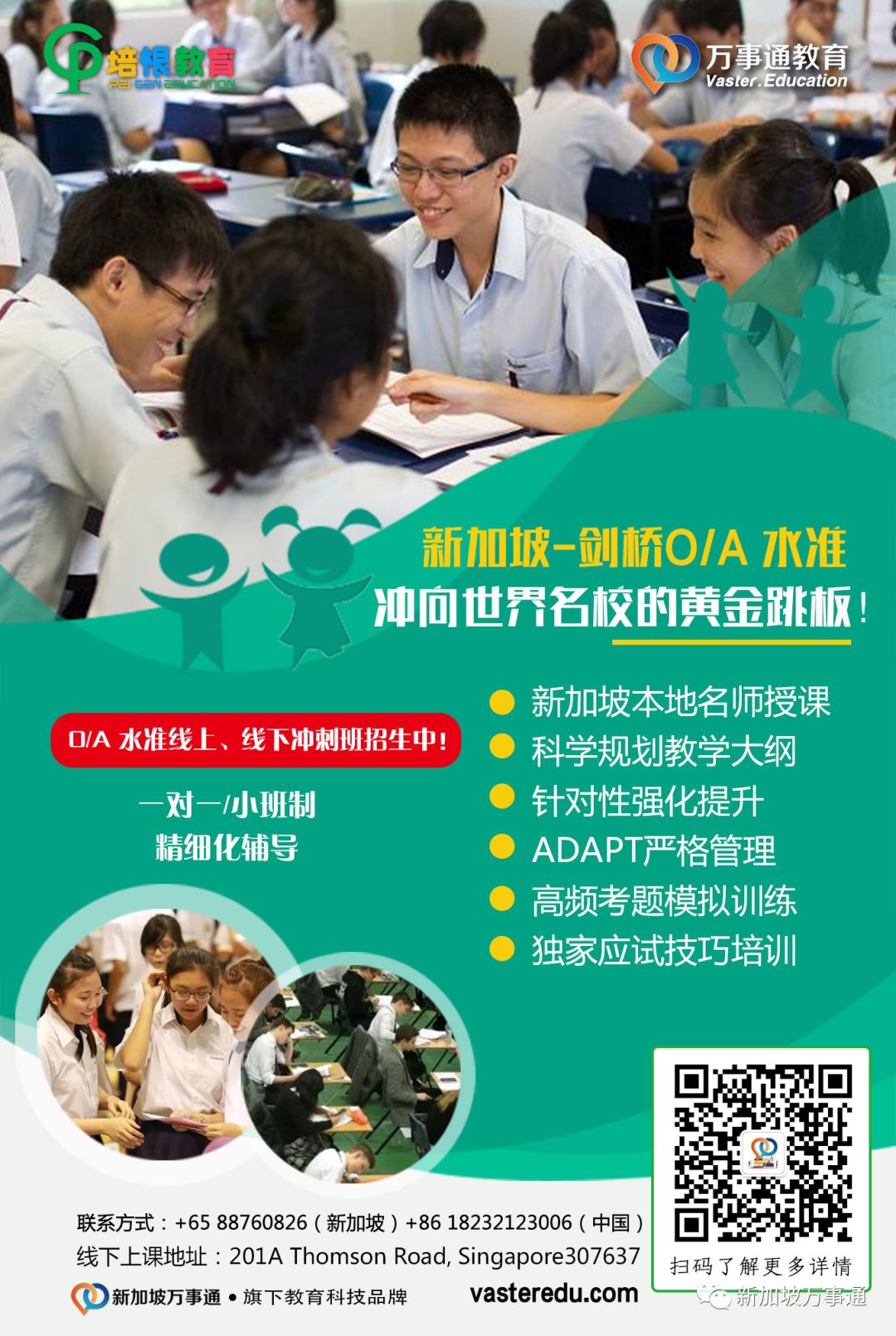 2. 专门针对在新加坡读O、A水准预科的学生,开设了英文、数学、物理、化学、经济等各个学科的补习培训课程。