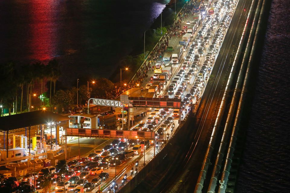 这可能是最近最让万事通感慨的一件事:3月17号凌晨2点。穿过柔佛海峡,连接新加坡兀兰与马来西亚新山的一条1,056米长的堤道上,拥挤的车灯于夜光下散发着夺目的光。