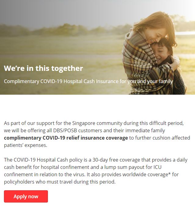 免费COVID-19保险!DBS/POSB宣布将对所有客户及其直系亲属提供免费保险,如被确诊可提供住院及ICU津贴