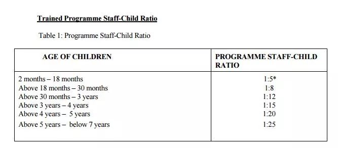 新加坡的幼儿园一般都是中英文双语教学,老师和学生的比例也是有具体要求的,比如说18-30个月的孩子比例是1:8,意思就是一个老师最多带8个孩子。