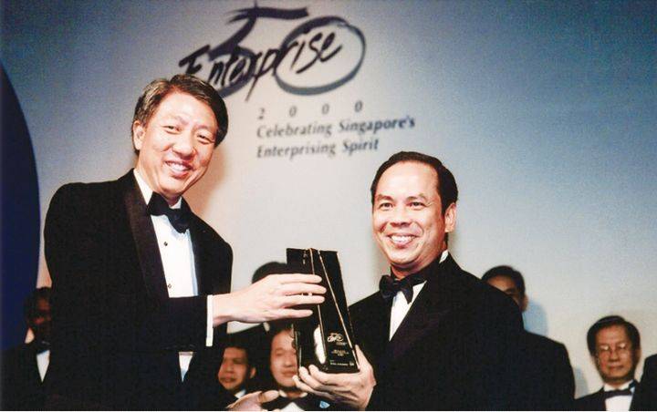 2000年,魏成辉(右)代表“第一家”接受新加坡“50大杰出企业奖”