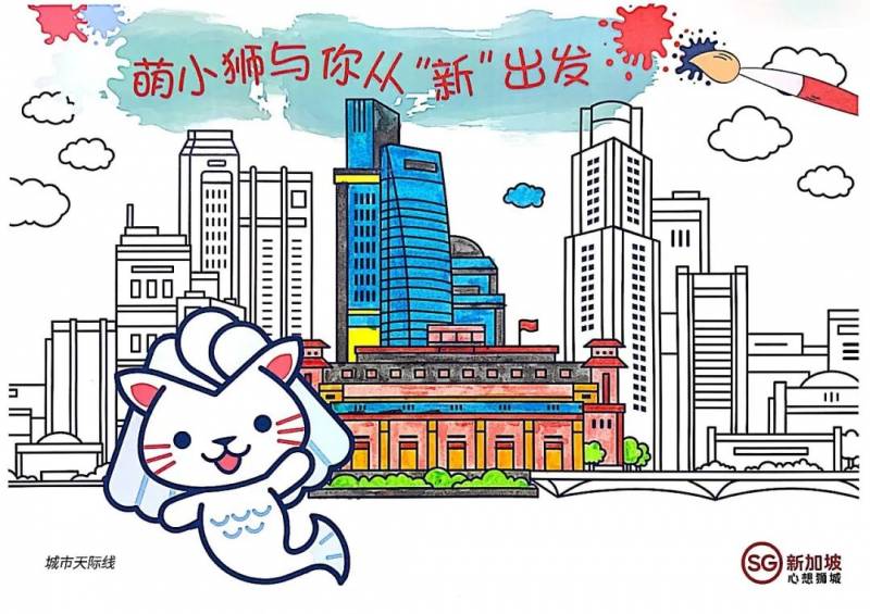 你是否见过日落时分的新加坡天际线?快用你的画笔描绘金色夕阳下闪闪发光的建筑吧!