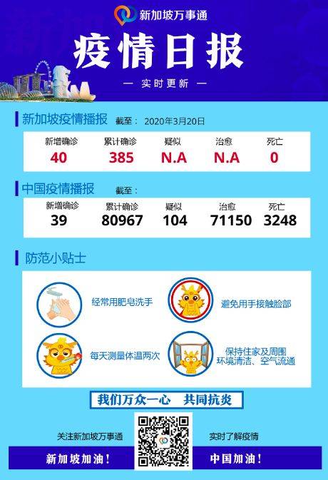 刚刚!新加坡又新增40起病例,其中,又30起从境外输入!目前累计确诊385例。