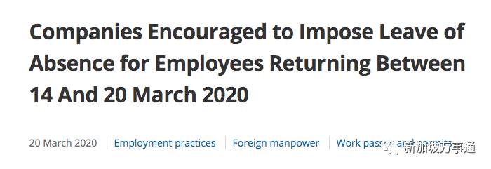 所有返国人员都需隔离假人力部在今天(3月20日)发文表示,鼓励雇主让3月14日至20日回返国门的所有雇员放有薪缺席假,无论对方是否接到有关部门发出的居家通知。